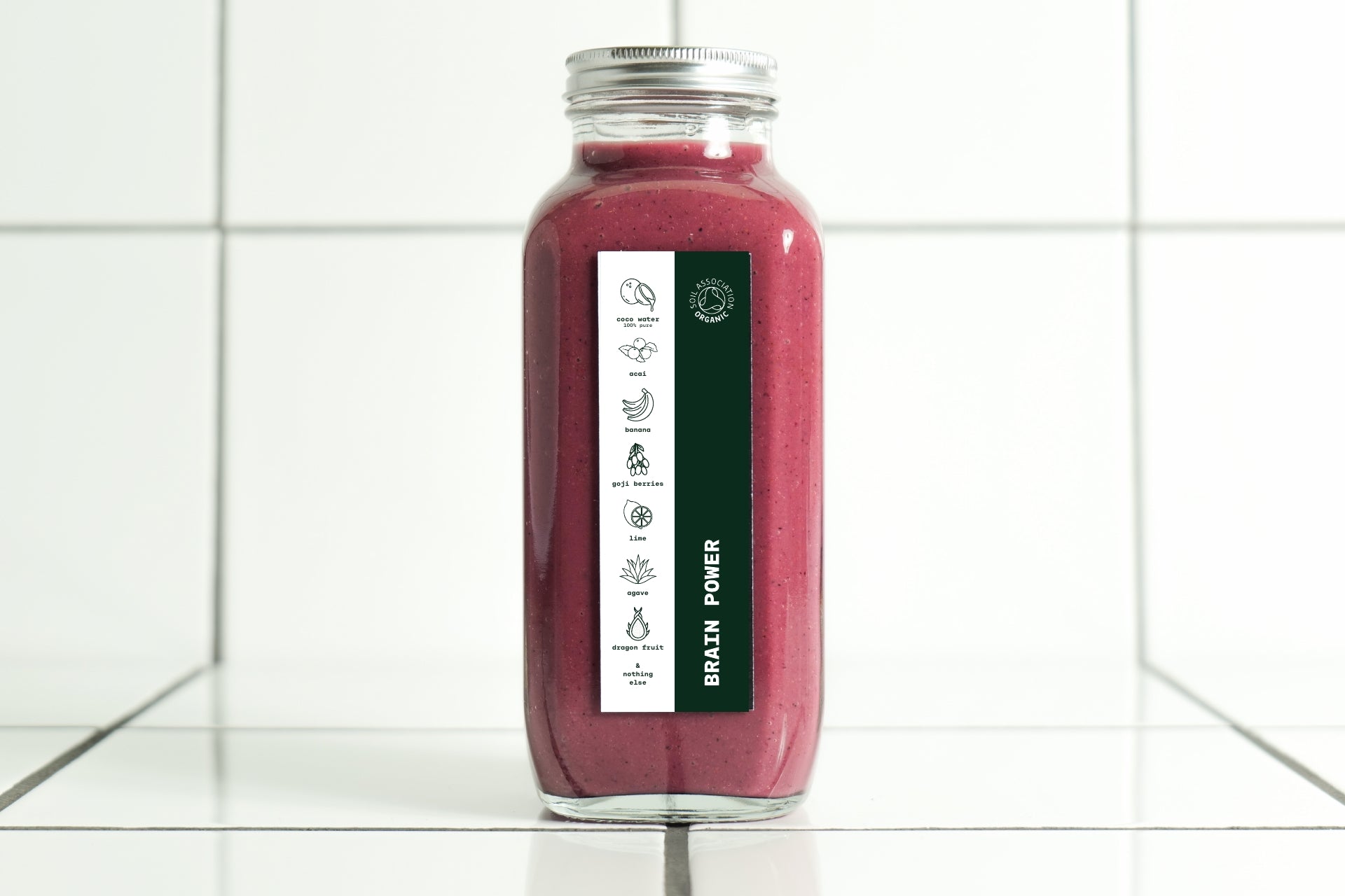 Made with 100% organic ingredients : coconut water (100% pure), banana, pure açai, dragon fruit, lime (cold-pressed), agave syrup, cinnamon and nothing else ! Packaging : 500ml Glass Bottle